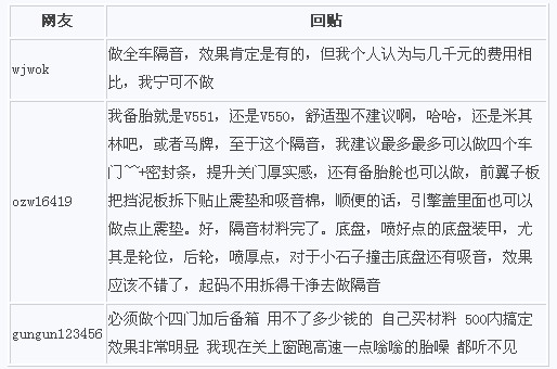 内容:其它都挺满意,就是越来越觉得噪音有点受不了,不知道做全车隔音有没有效果?有多少效果?轮胎也想差不多就换静音胎,好像不少人推荐横滨的V551,换胎的话隔音还要做吗?